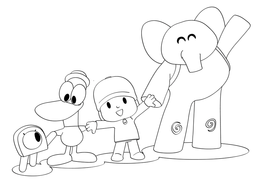 Dibuja y Colorea A Pocoyó Y Sus Amigos 👶👧🐶🐥🐘 Dibujos Para Niños - Nina Pocoyo Para Colorear E Imprimir